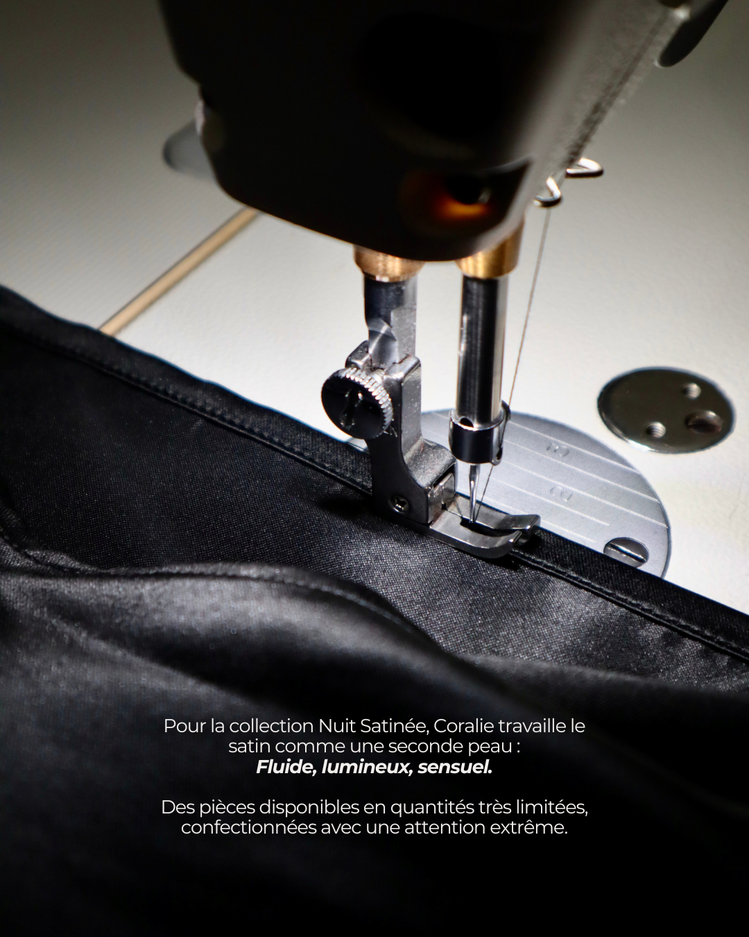 Confectionné en édition limitée dans notre atelier à Montpellier, il mêle douceur, fluidité et savoir-faire artisanal. Sa coupe légère et aérienne accompagne chaque mouvement, du matin aux soirées satinées.